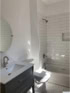 Sunny and bright with glass sliding doors to the rear deck, an open and loft-like living and dining area, the ensuite bedroom includes a tiled bath and set on a quiet village street with private parking.